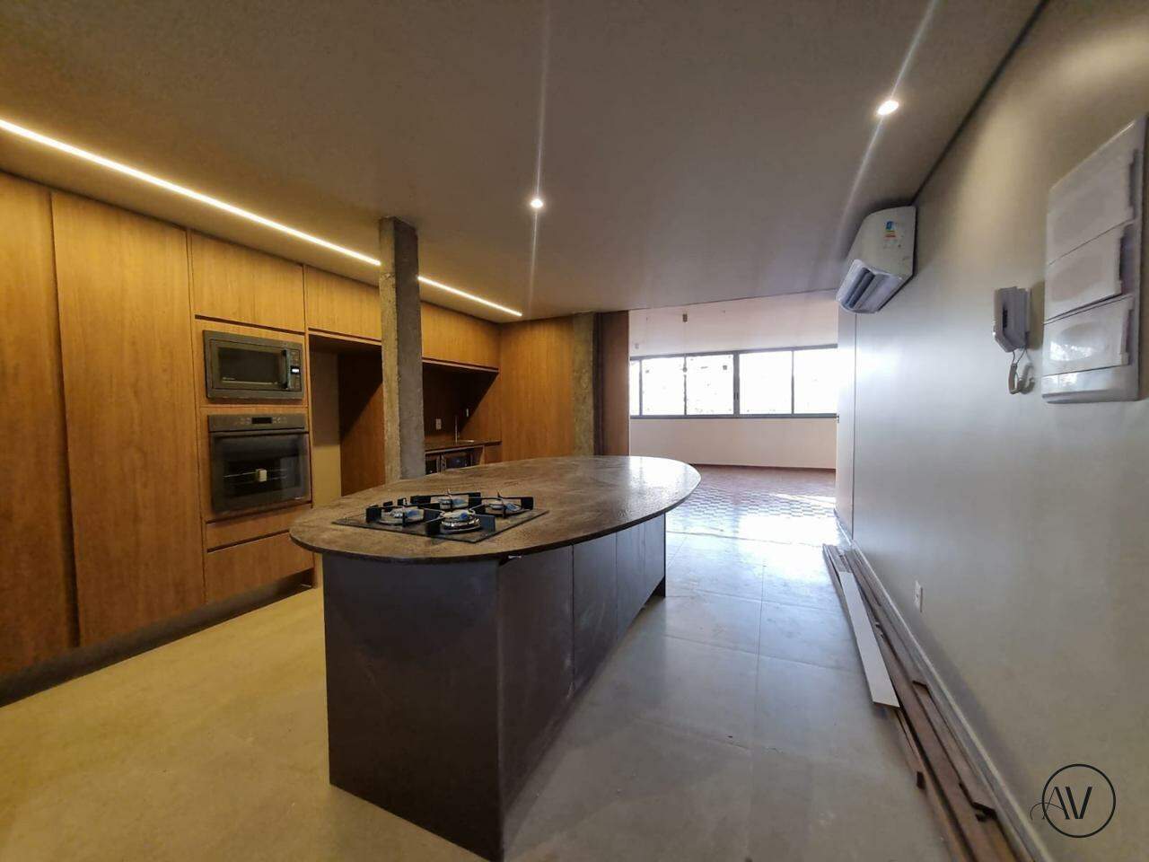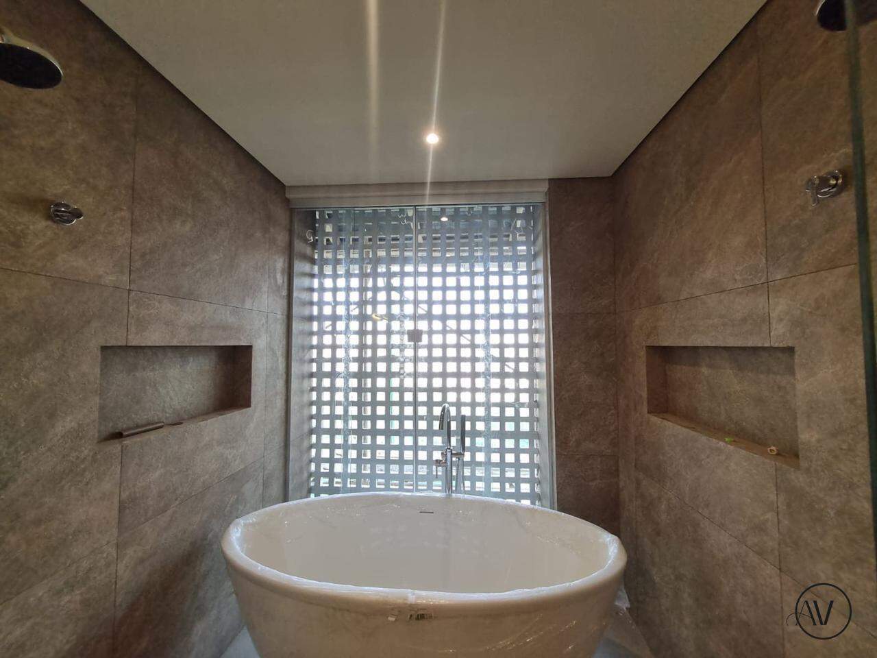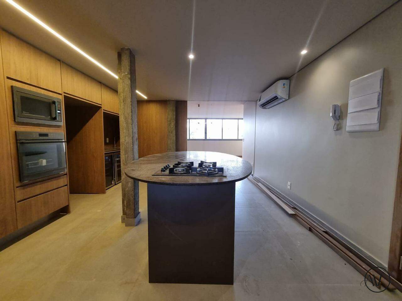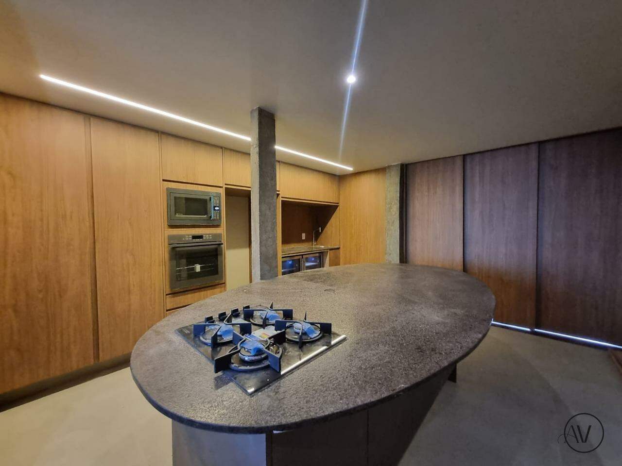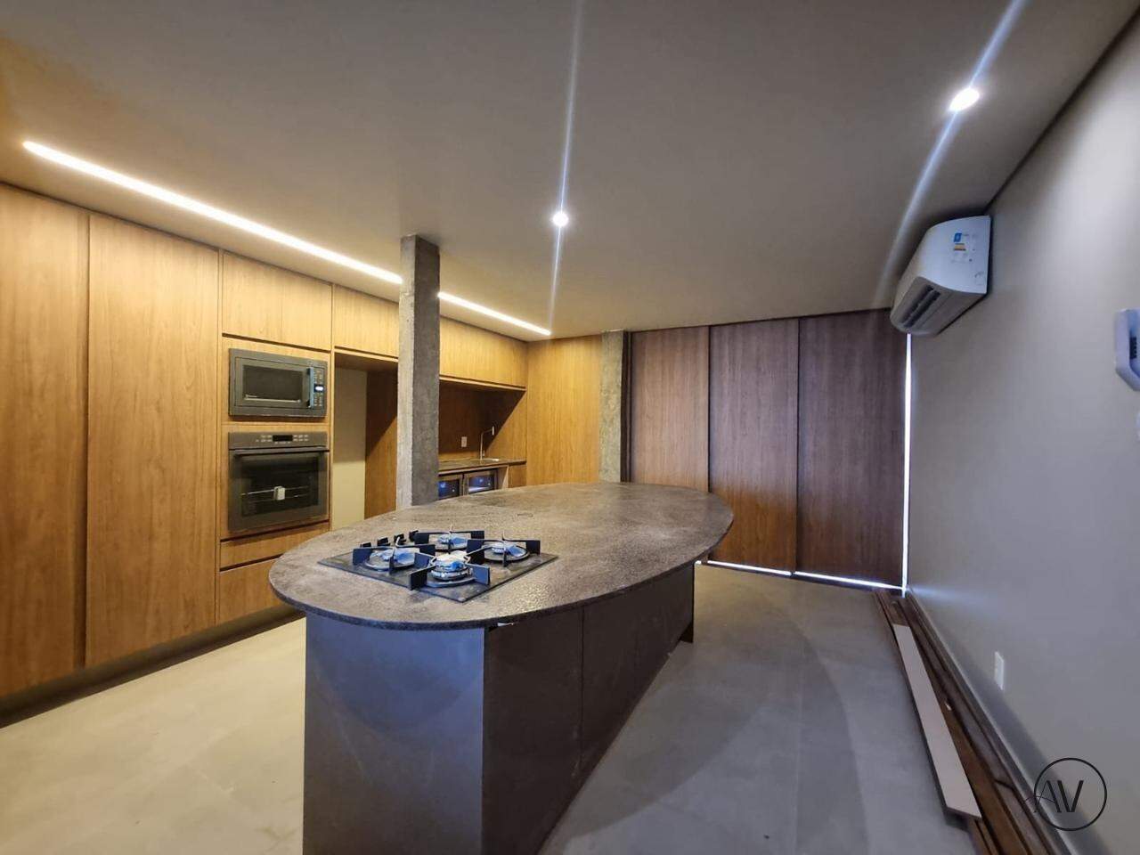 • Cozinha gourmet equipada com cooktop, forno elétrico, forno de micro-ondas, depurador de ar, lava-louças, adega, cervejeira e mesa oval central, além de ser bem servida de armários planejados
