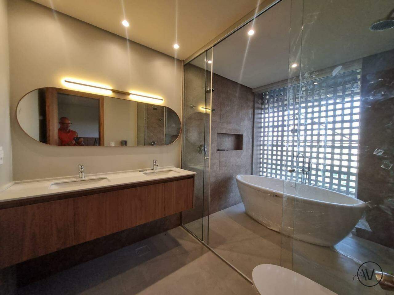 - 1 suíte master com linda banheira, duas pias e dois chuveiros