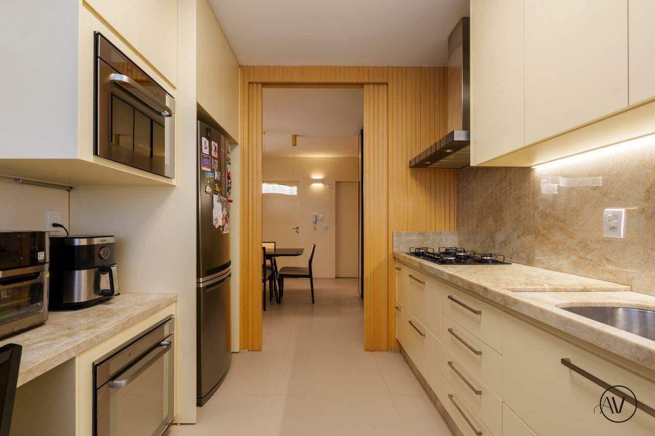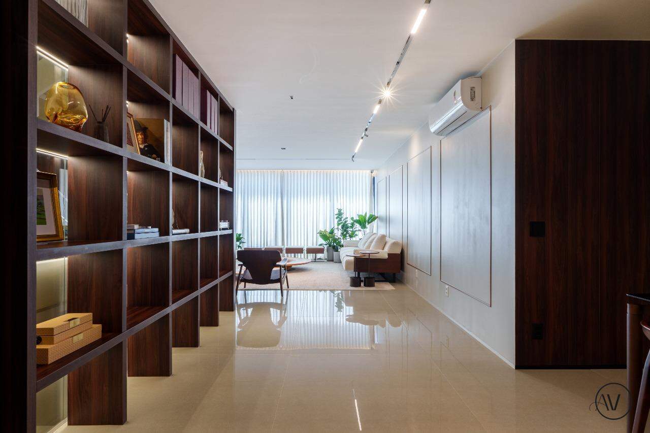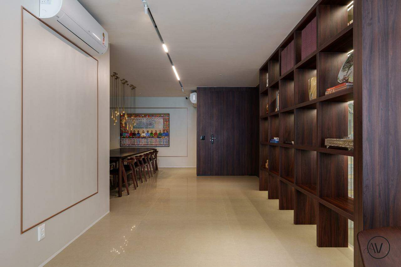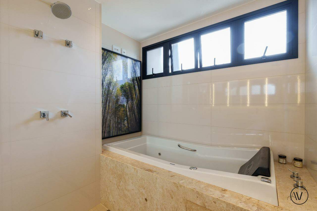 Os ambientes sociais foram concebidos para integrar elegância, amplitude e convivência, reunindo sala de estar, jantar e sala íntima em uma composição contínua e acolhedora. A área de apoio e a cozinha valorizam a praticidade do dia a dia, enquanto o projeto arquitetônico evidencia acabamentos refinados, marcenaria planejada e uma circulação inteligente entre os dois pisos, reforçando a sensação de residir em um espaço único e excepcional.