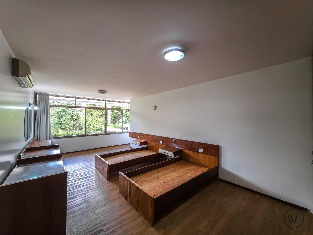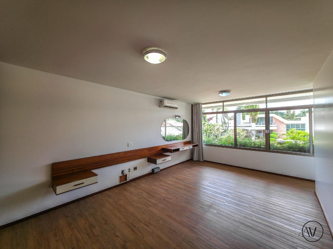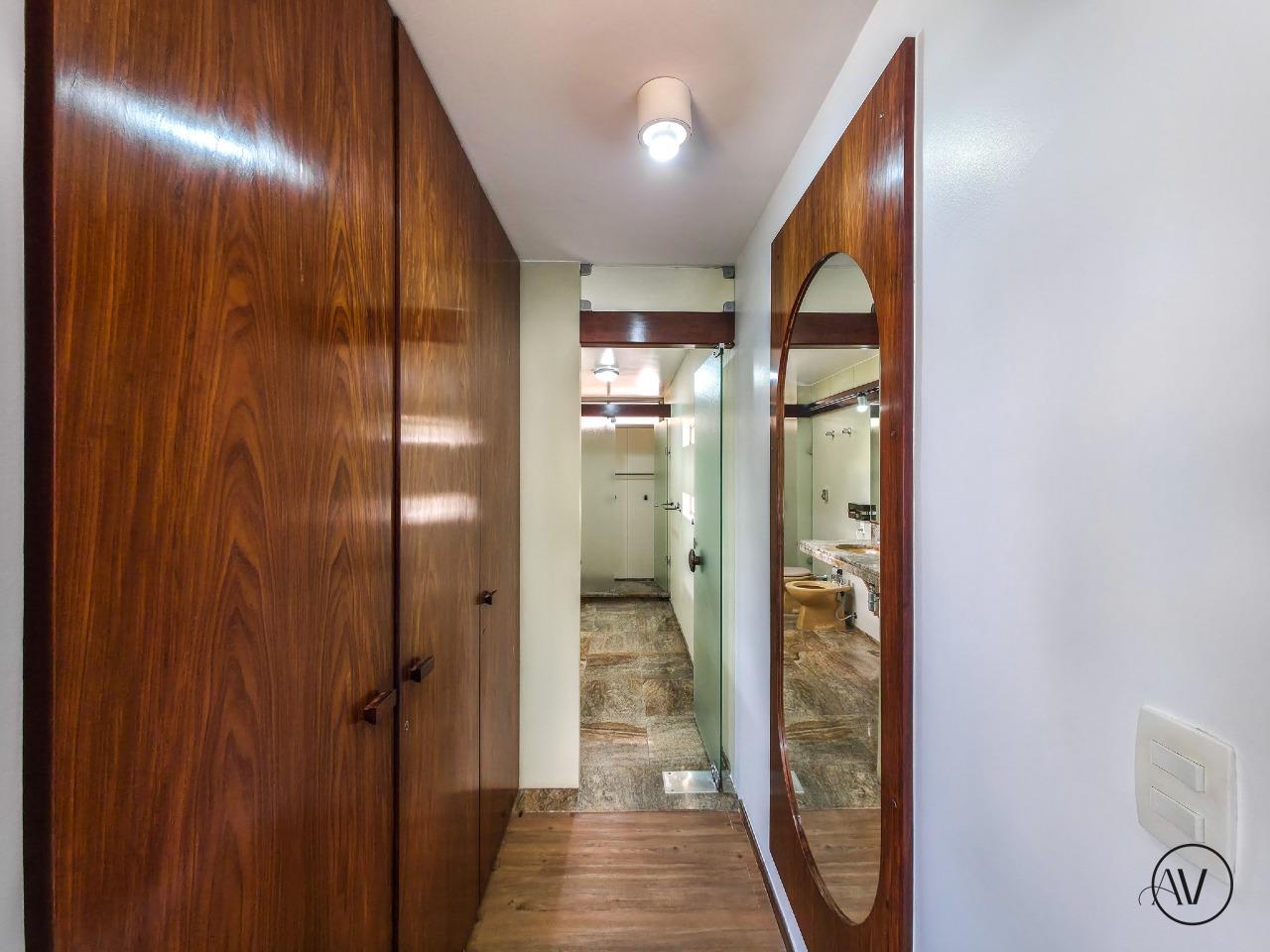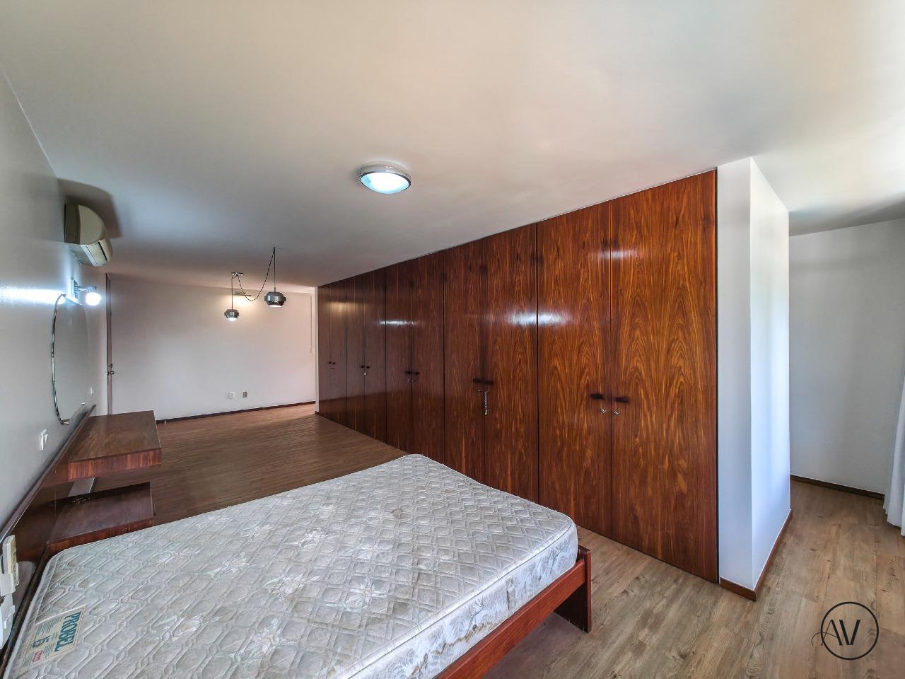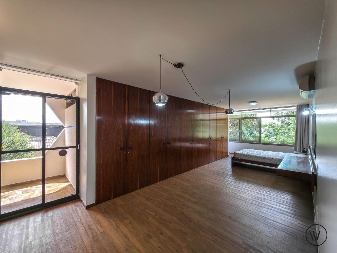 Design de Época: As suítes preservam o charmoso mobiliário embutido original dos anos 70, que acompanha o estilo da casa (com a flexibilidade de ser removido pelo locatário, se preferir).