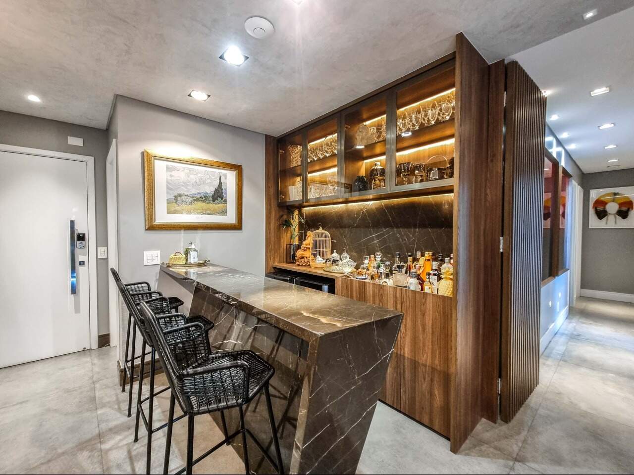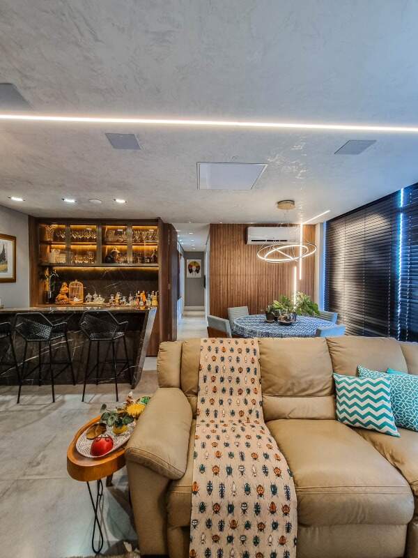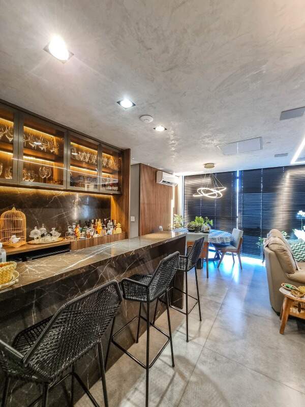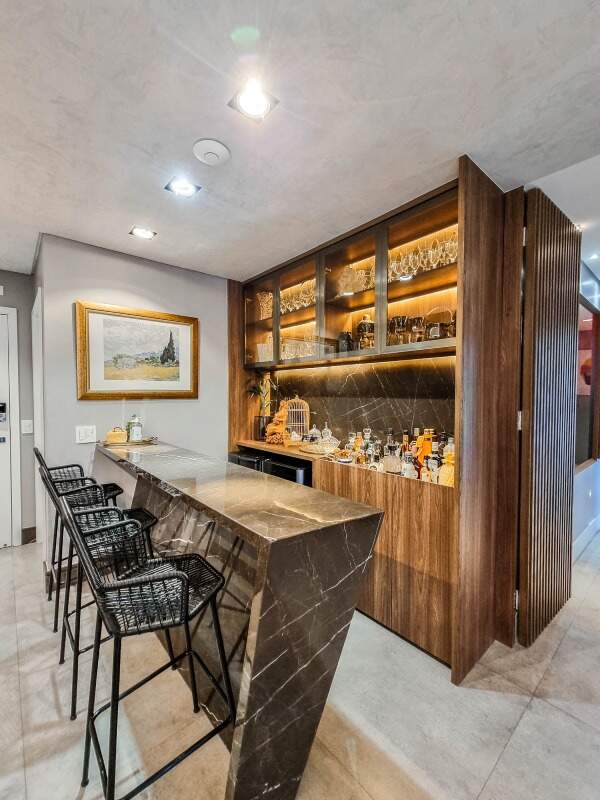 A espaçosa sala de estar oferece dois ambientes distintos, perfeitamente paginados com um pub, criando o cenário perfeito para entretenimento e momentos relaxantes. Imagine-se recebendo amigos e familiares neste espaço convidativo, onde a diversão e o conforto se fundem em harmonia.