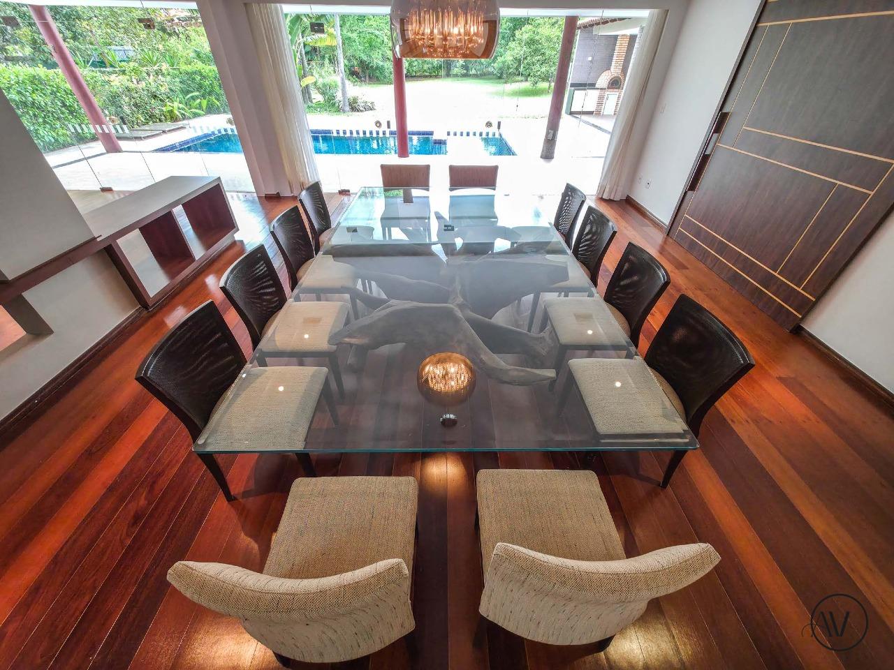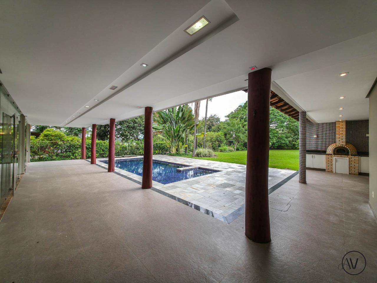 Na área externa, a casa oferece lazer completo com piscina, churrasqueira, banheiro de apoio e garagem coberta para até três veículos.