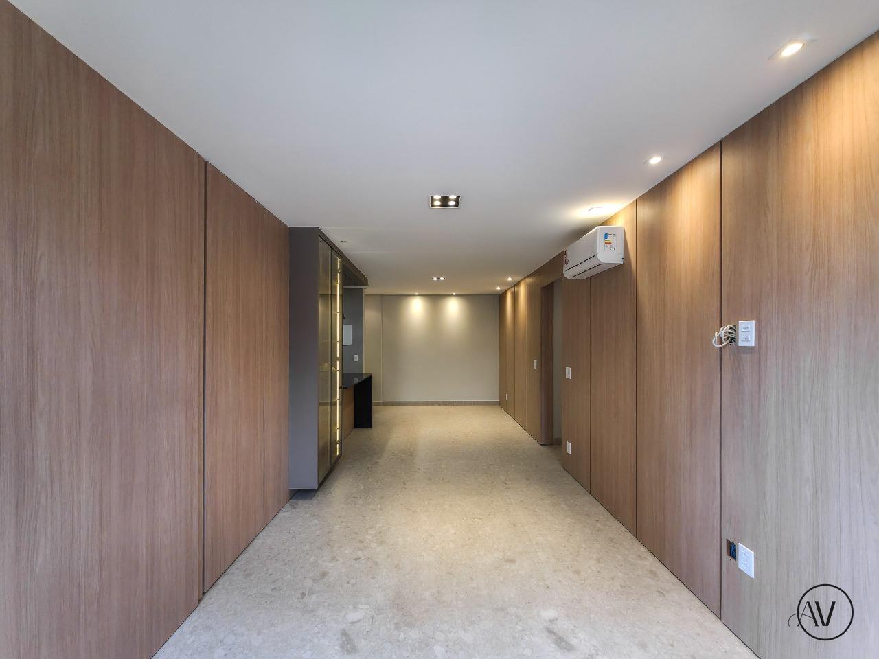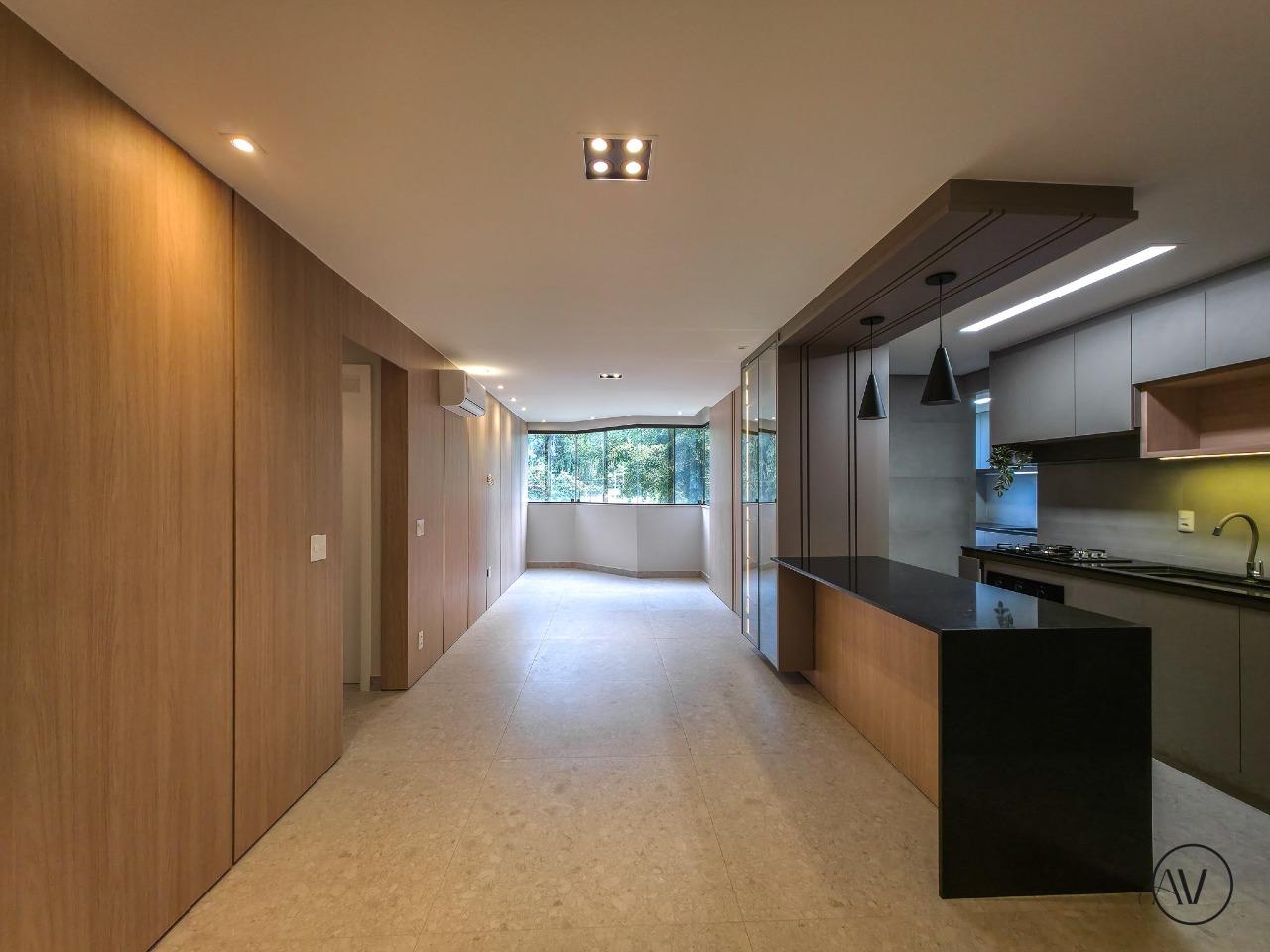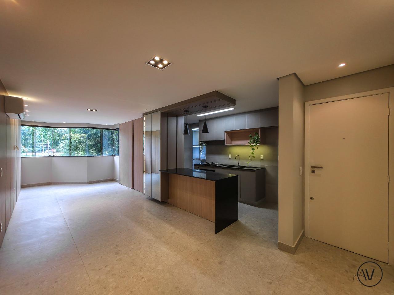 A planta foi cuidadosamente atualizada, com cozinha aberta e integrada à sala, criando um ambiente contemporâneo e acolhedor. A cozinha conta com armários planejados de excelente qualidade, incluindo gavetas específicas para frutas e verduras, além de cooktop e forno instalados.
